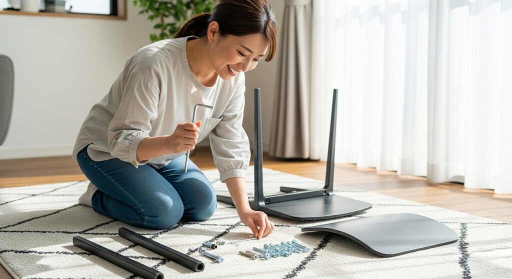 通販でオフィスチェアを購入する際、最大のハードルとなるのが「組み立て」です。「重たいパーツを持って、複雑な説明書と格闘して、終わった頃には汗だく…」なんて経験、誰しもあるのではないでしょうか。