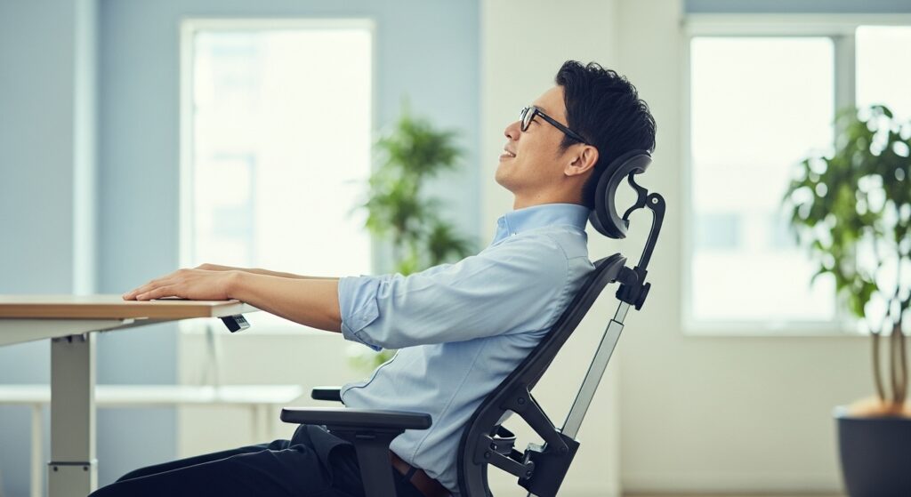 まず背もたれについてですが、長時間のデスクワークを想定するなら、私は断然「ハイバック(背もたれが高いタイプ)」を推奨します。背中全体を預けられる面積が広ければ広いほど、後ろにひっくり返りそうな恐怖感を軽減できるからです。特に、リクライニングした時に頭や肩まで支えてくれるモデルなら、高所にいながら地上と同じようなリラックス状態を作ることができます。