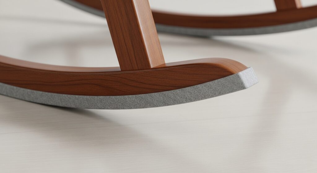 貼るフェルトテープ型脚の裏にシールのように貼るだけなので導入が極めて簡単。比較的安価に手に入る。ロッキングチェア特有の揺れの摩擦によって粘着力が落ちやすく、すぐに剥がれてしまうリスクが高い。