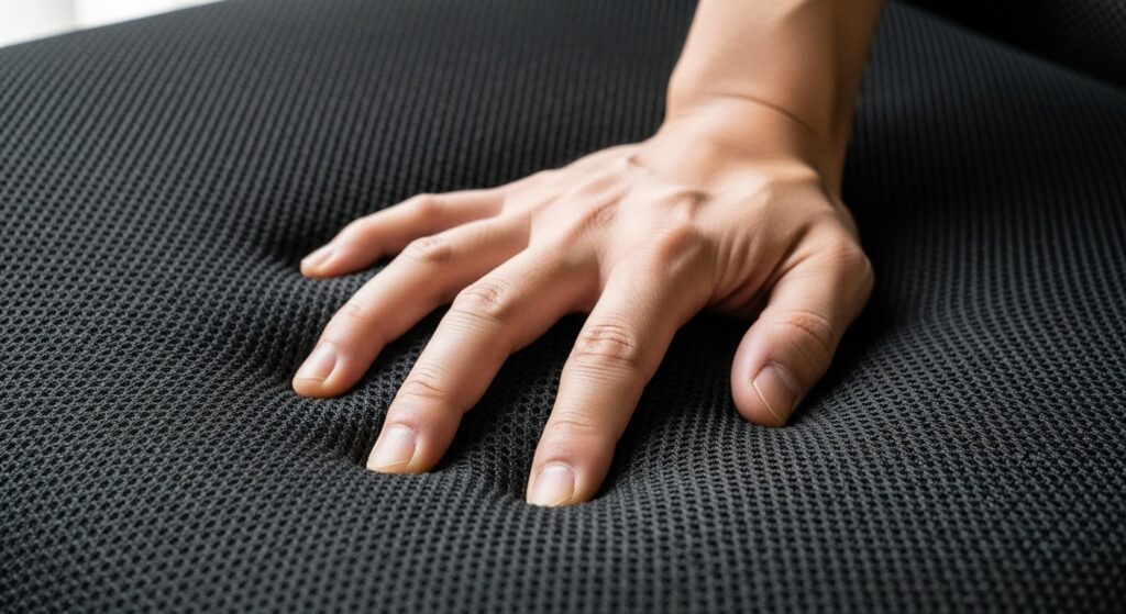 中古のオフィスチェアを買う上で、最もリスクが高いのが「座面のコンディション」です。特にコンテッサセコンダのようなメッシュチェアの場合、座面は体重を支え続ける過酷な環境にあります。長年使われた個体は、メッシュが伸びてハンモックのように沈み込んでしまい、座ると太ももの裏や骨盤を圧迫して、逆に腰痛の原因になってしまうことさえあるんです。